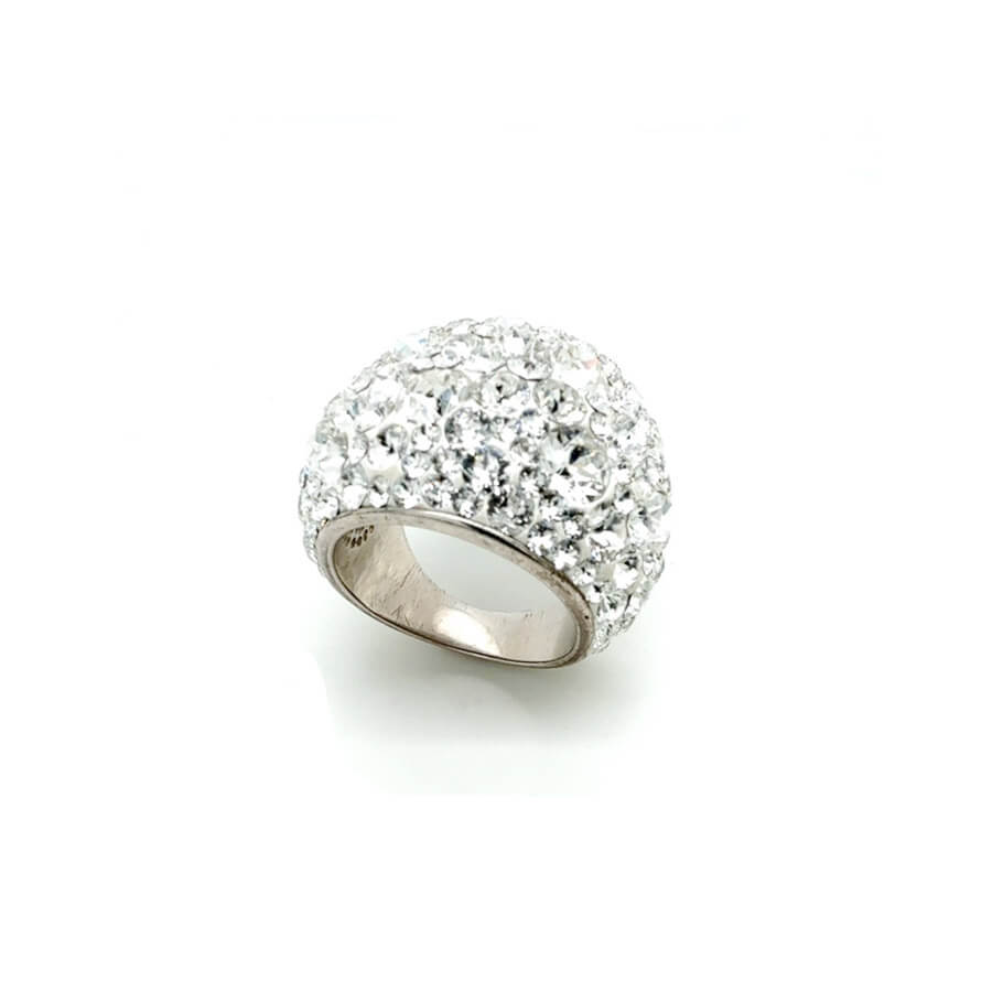 Das auffallende Schmuckstück besteht aus Silber mit funkelnden Zirkonia eingefasst.