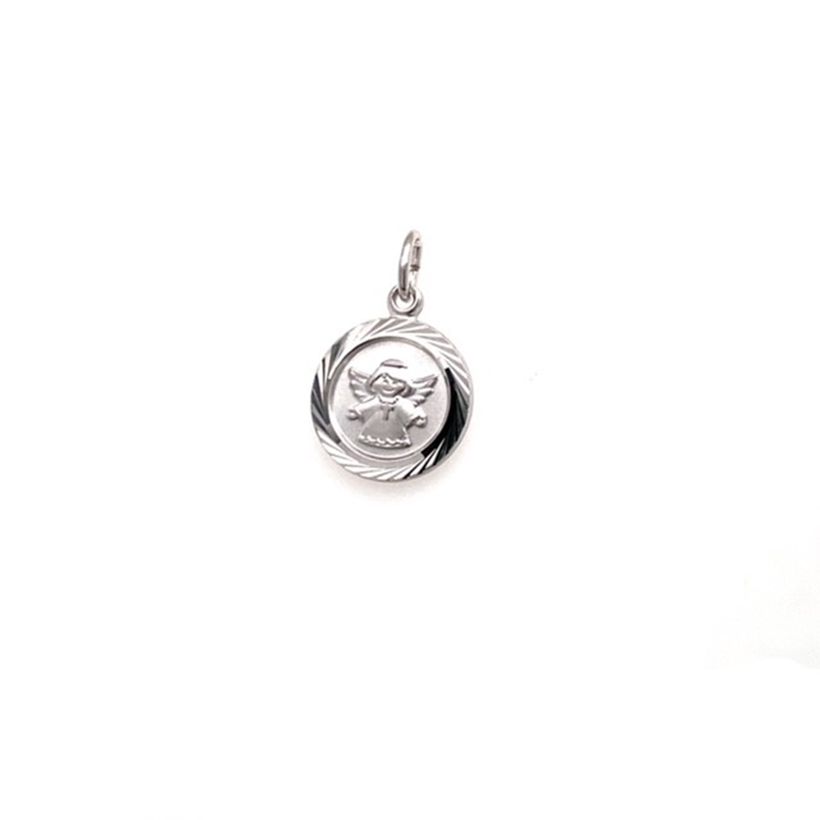 Runder Silber Schutzengel mit diamantiertem erhöhtem Rand und mattiertem innenteil.