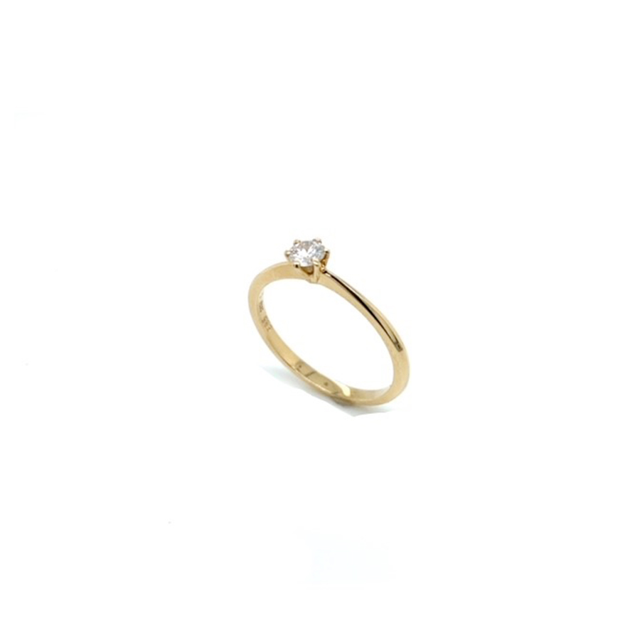 Klassischer Solitärring in Gelbgold, mit einem funkelnden Diamanten in 6-er Krappenfassung.