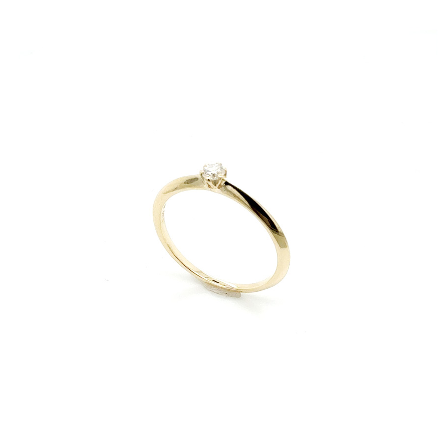 Klassischer Solitärring in Gelbgold, mit einem funkelnden Diamanten in der Mitte in 6-er Krappenfassung.